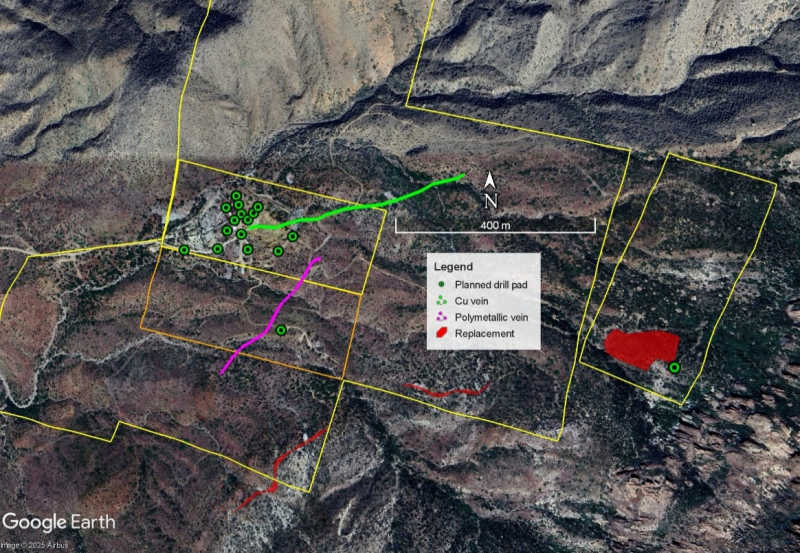 Following the recent discoveries, Prismo is planning to add second phase of drilling for an additional 1,000 meters. This additional program will focus on the newly identified targets outside of the historic mining area, such as the polymetallic vein and the copper vein mentioned above. Drilling of a large body of replacement mineralization on the patented Black Diamond claim is also being planned and is road accessible on private ground.