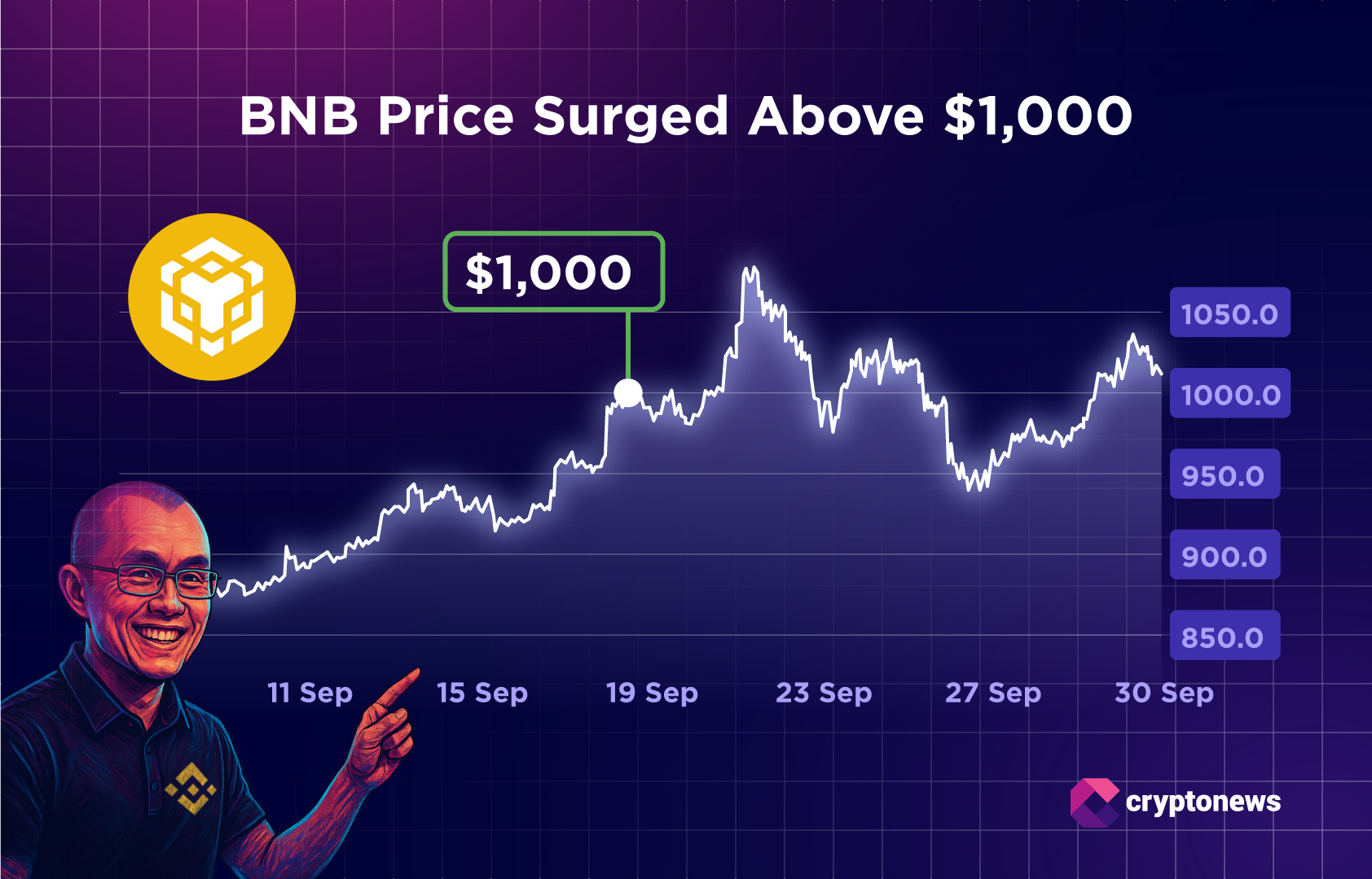 For many, September brought an unexpected shift. Instead of Ethereum driving the market narrative, attention turned to BNB and its broader ecosystem. BNB broke above $1,000 for the first time ever, setting a new all-time high at $1,079.