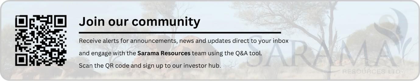 Sarama Resources Ltd | +61 8 9363 7600 | e: info@saramaresources.com