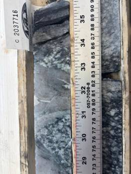 Figure 2 showing a section of uncut core from the Dead Otter trend displaying sulphides which could indicate potential mineralisation.